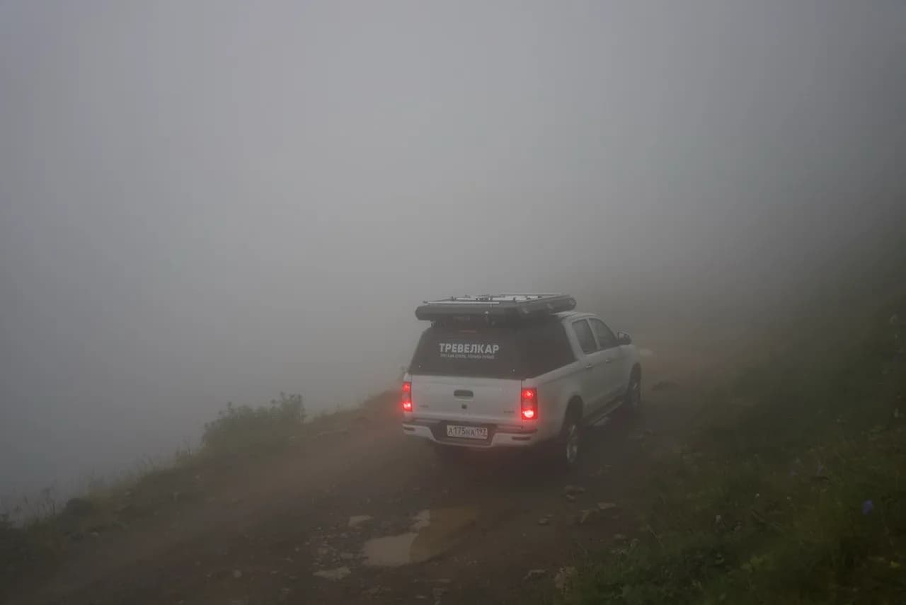 Если ехать через эту дорогу из Тырныауза, то просто так не пустят. Если спускаетесь со стороны Джилы-су, то выбора у ребят на шлагбауме нет. Они записывают ваши данные, и открывают шлагбаум 43.389938, 42.895007 — отсюда начинается почти шоссе, без асфальта, но дорога широкая, и даже есть знаки. В итоге весь маршрут от поворота у Джилы-су до выезда в Тырныаузе равен 60 км, и занял у меня почти 4 часа. Так что если это место не самоцель, то объехать будет даже быстрее, несмотря на значительно большее расстояние)