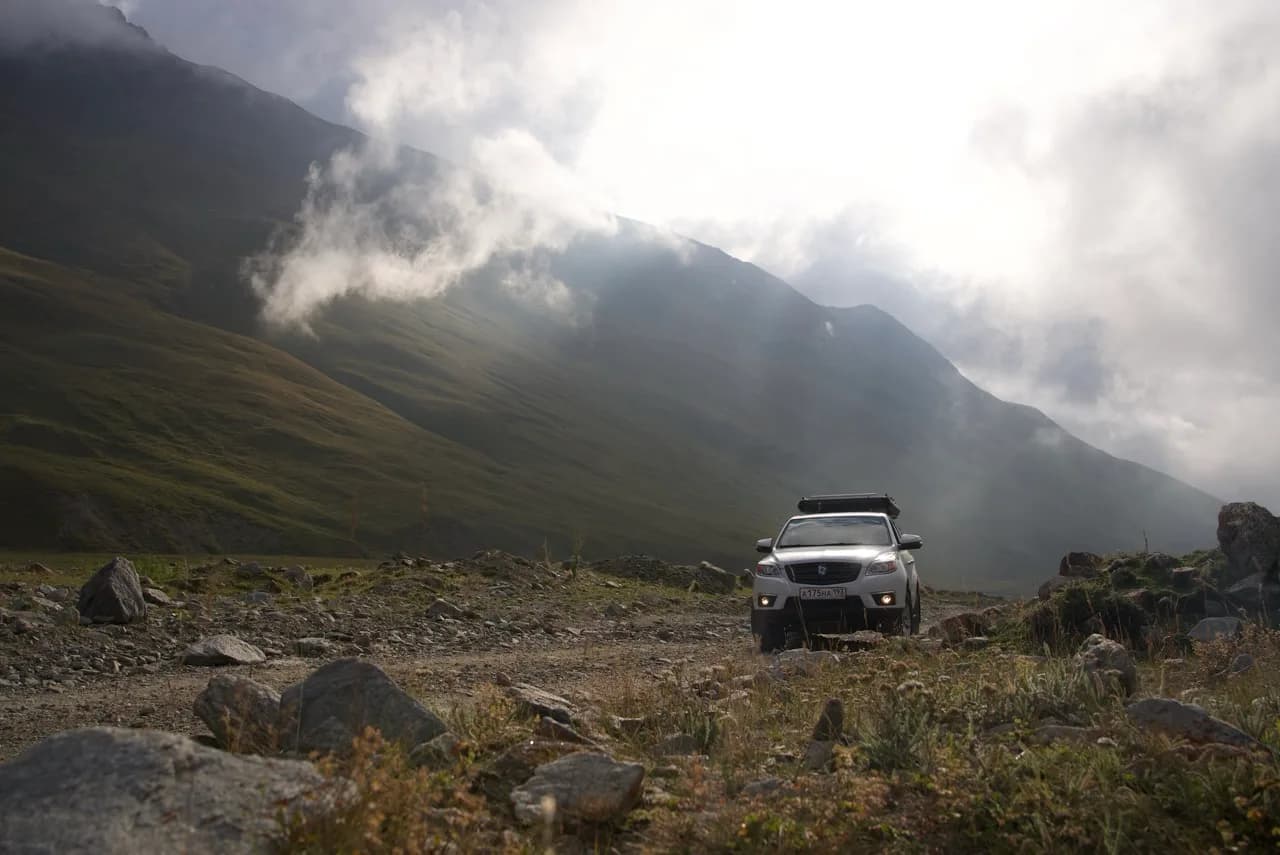 Для начала двигаемся к хорошо известной всем локации — Джилы-су. Имейте в виду, что теперь по пути к ней требуют 200 рублей. Не доезжая немножко до самой точки Джилы-су, где берут ещё 300 рублей, поворачиваем налево После перевала Шаукол дорога уходит сначала вниз, а после снова наверх, к перевалу Джаурген